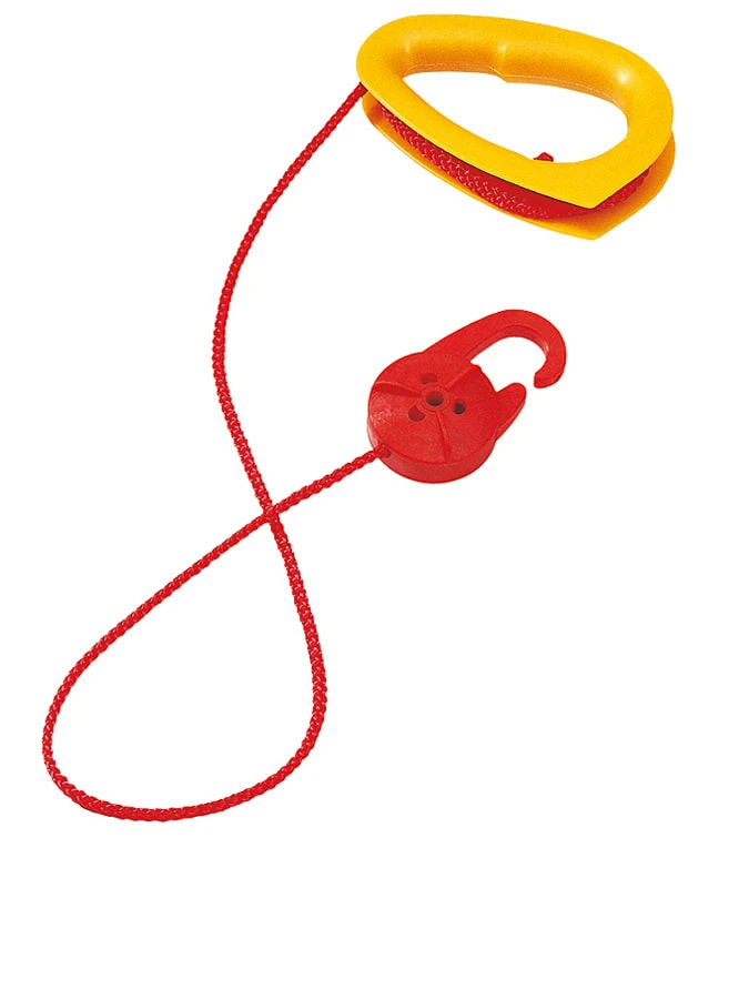 Achtung! Kein Kinderspielzeug. Strangulationsgefahr durch Schnur.