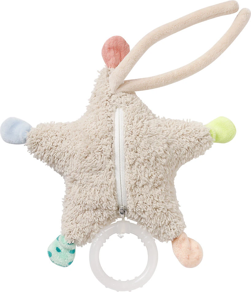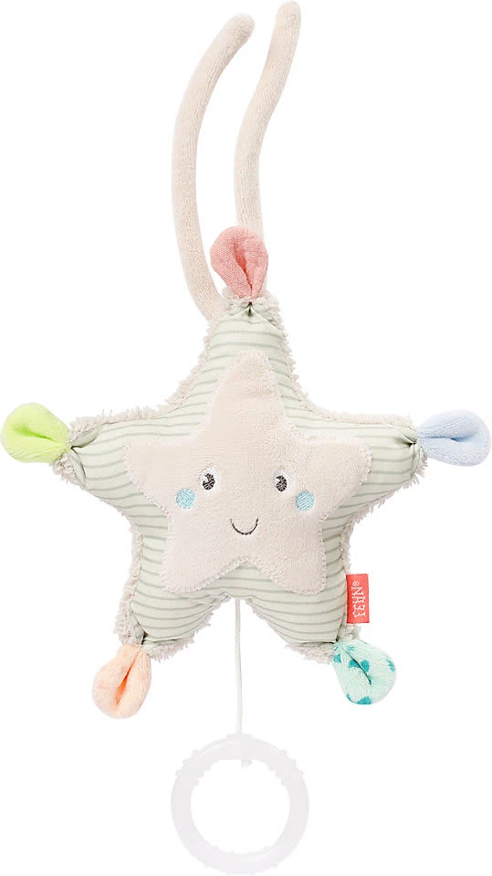 Die süße Seestern-Spieluhr von Fehn tröstet, beruhigt und hilft dank sanfter Melodie beim Einschlafen. Mini-Spieluhr Seestern von Fehn aus der „Meereskinder“-Kollektion spielt die Melodie von „Weißt du wieviel Sternlein stehen“ Spieldauer ca. 1,5 Minuten aufziehbares, herausnehmbares Spielwerk Obermaterial aus Velours, Druckstoff, Bouclette und Musselin ab Geburt geeignet Der freundliche Seestern ist ein toller Gefährte von Geburt an: Er hilft den Kleinen mit der schönen Melodie von „Weißt du wieviel Sternlein stehen“ zuverlässig beim Einschlafen. Die verschiedenen Materialien laden die Kleinen zum Greifen und Entdecken ein und fördern so spielerisch die Feinmotorik. Dank den praktischen Bindebändern kannst Du die Spieluhr bequem am Bettchen, dem Laufgitter und am Kinderwagen befestigen. Das Spielwerk kann dank einem Reißverschluss entnommen werden – so kannst Du den kleinen Seestern bequem waschen.
