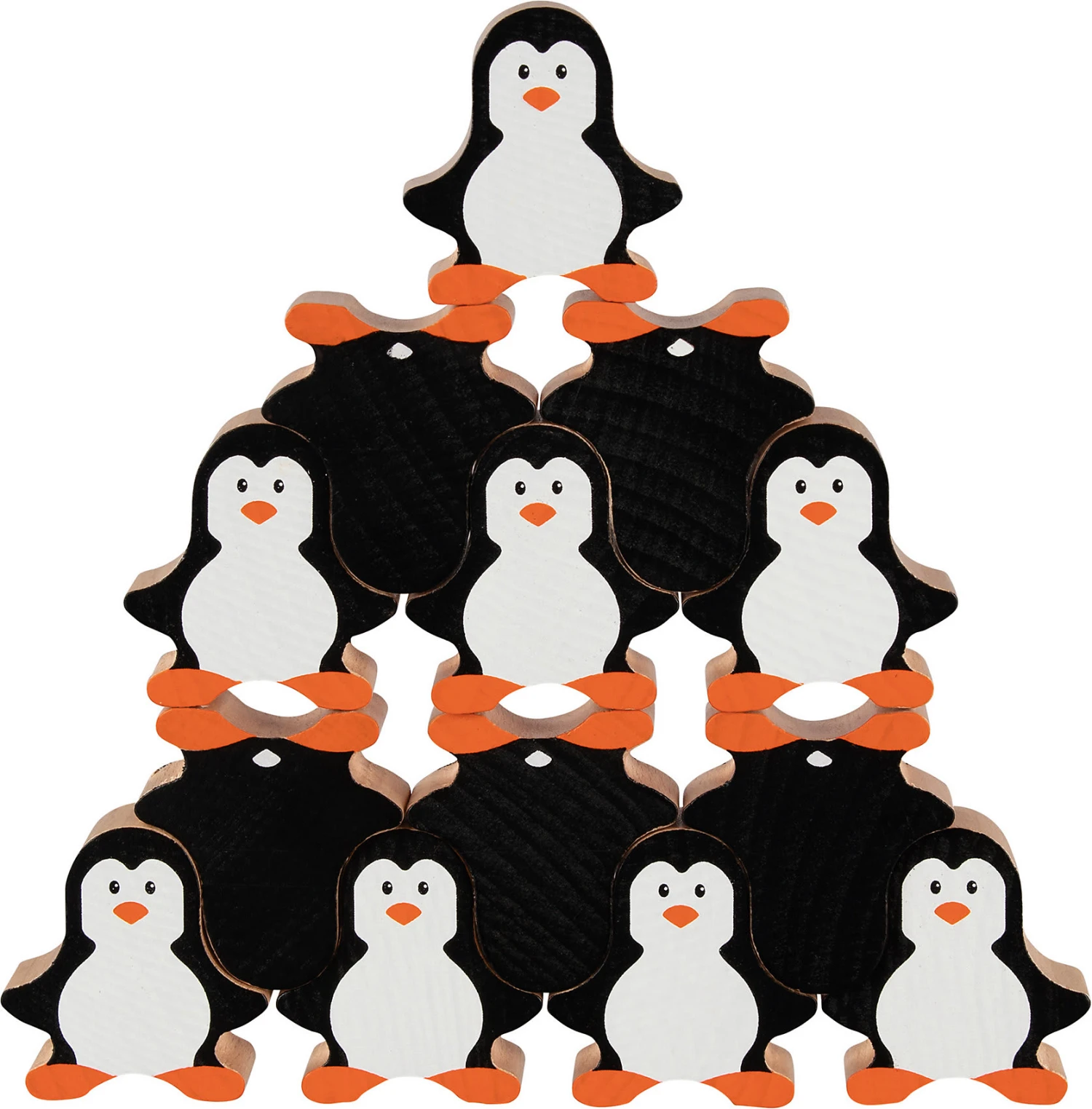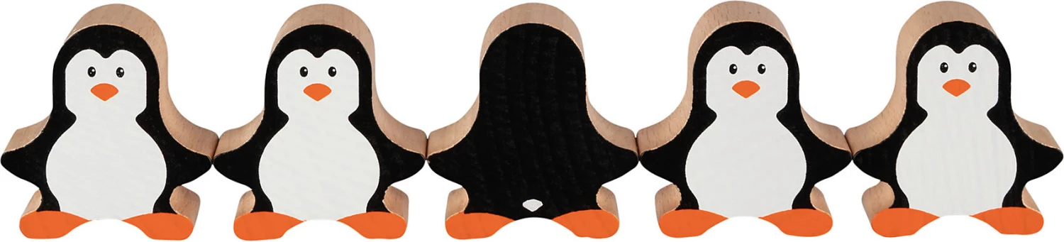 Das lustige Set vereint niedliche Pinguine, die in vielen Variationen aufeinander gestapelt werden können. Zwei der süßen Tierchen zeigen sich dabei „von hinten“ und geben jeder Stapelfigur so eine weitere, lustige Komponente. Ganz nebenbei werden so räumliches Vorstellungsvermögen und Motorik trainiert.