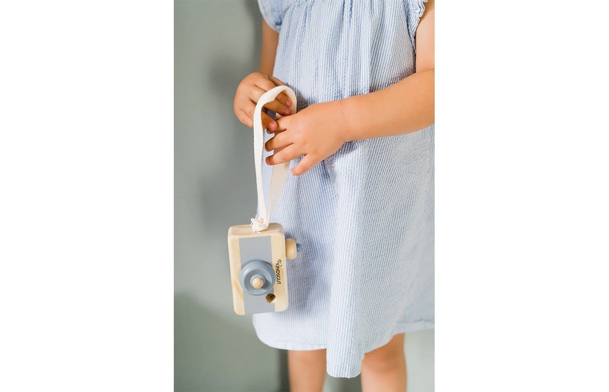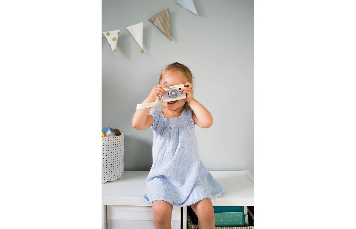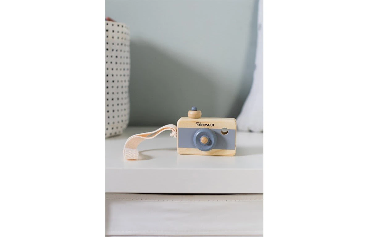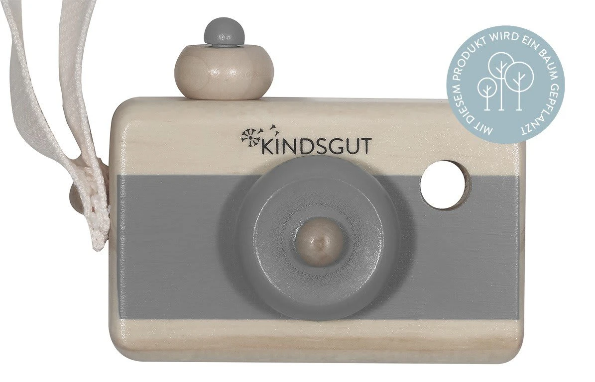 Die Kindsgut Holz-Kamera verbindet kindliches Design und schöne dezente Farben mit hochwertiger Holzqualität. Die liebevoll designte Minikamera aus Holz passt ideal zum reduzierten Look moderner Kinderzimmer. Die kleinen Nachwuchs Fotografen können durch die drehbare Linse fokussieren und auf dem Auslöseknopf ein Bild knipsen. Durch die praktische Umhängeschlaufe kann auch nichts verloren gehen. Schön verpackt im einzigartigen Kindsgut Design ist die Spielzeugkamera ein tolles Geschenk und Mitbringsel für zwischendurch oder auch zum ersten Geburtstag.