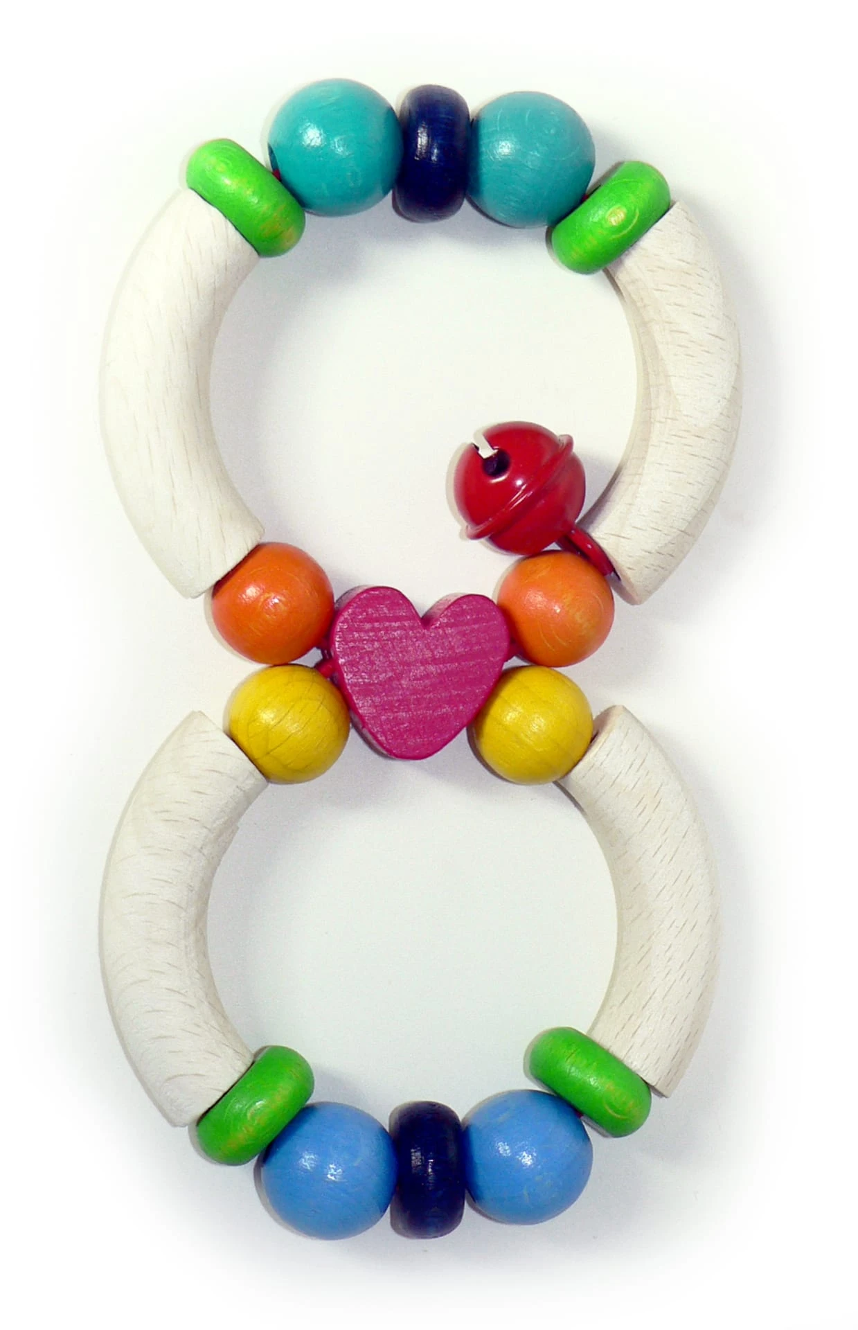 farbenfrohe und kindgerechte Rassel mit Holzelementen