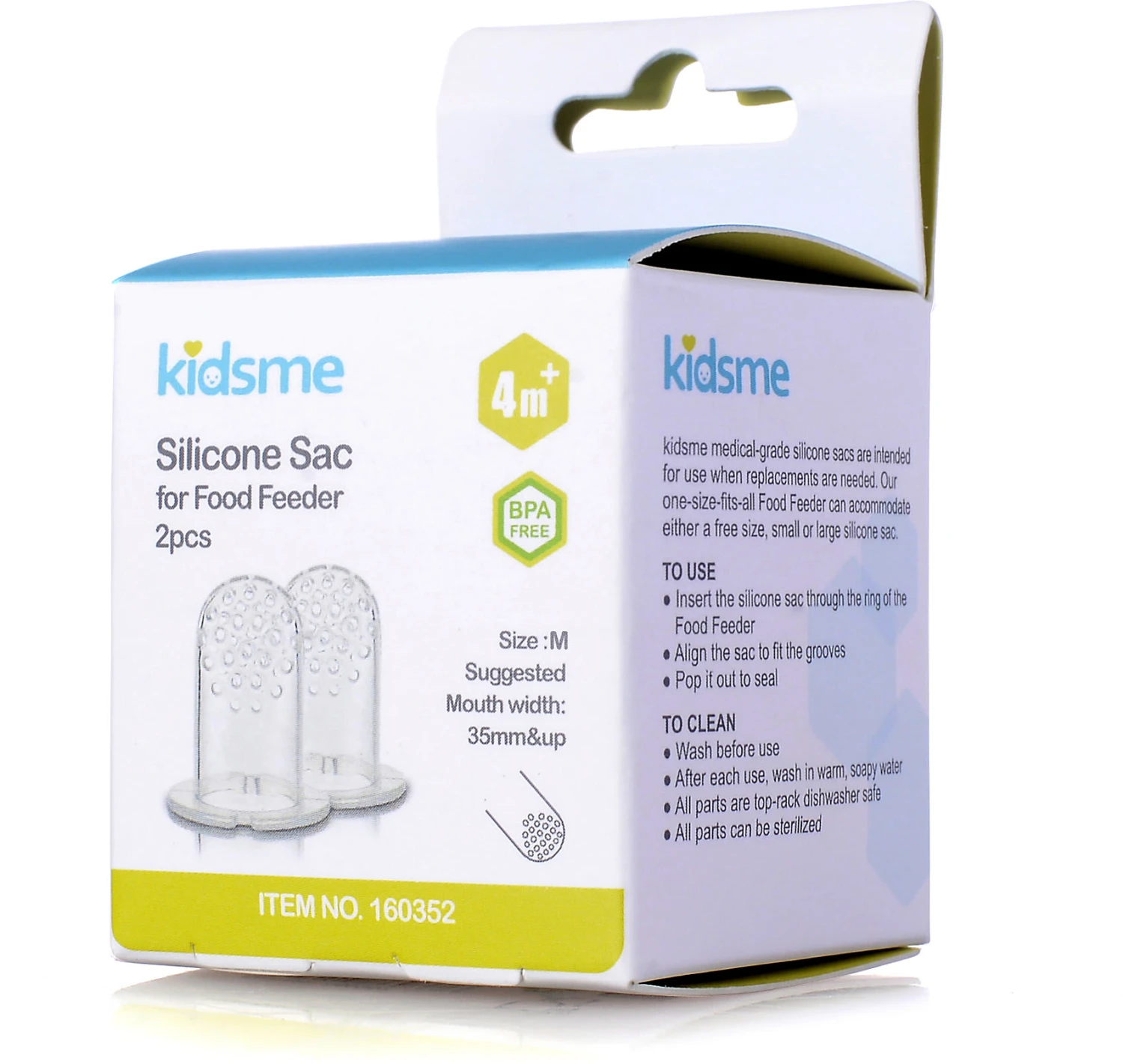 Die Ersatzsauger in Größe M im Zweierset können Sie für den „Food Feeder“ von kidsme verwenden. Der Food Feeder hilft Ihnen, Ihr Kind an feste Nahrung heranzuführen.