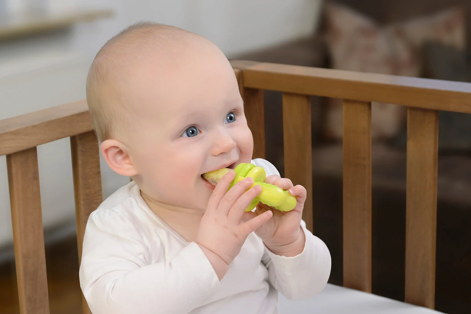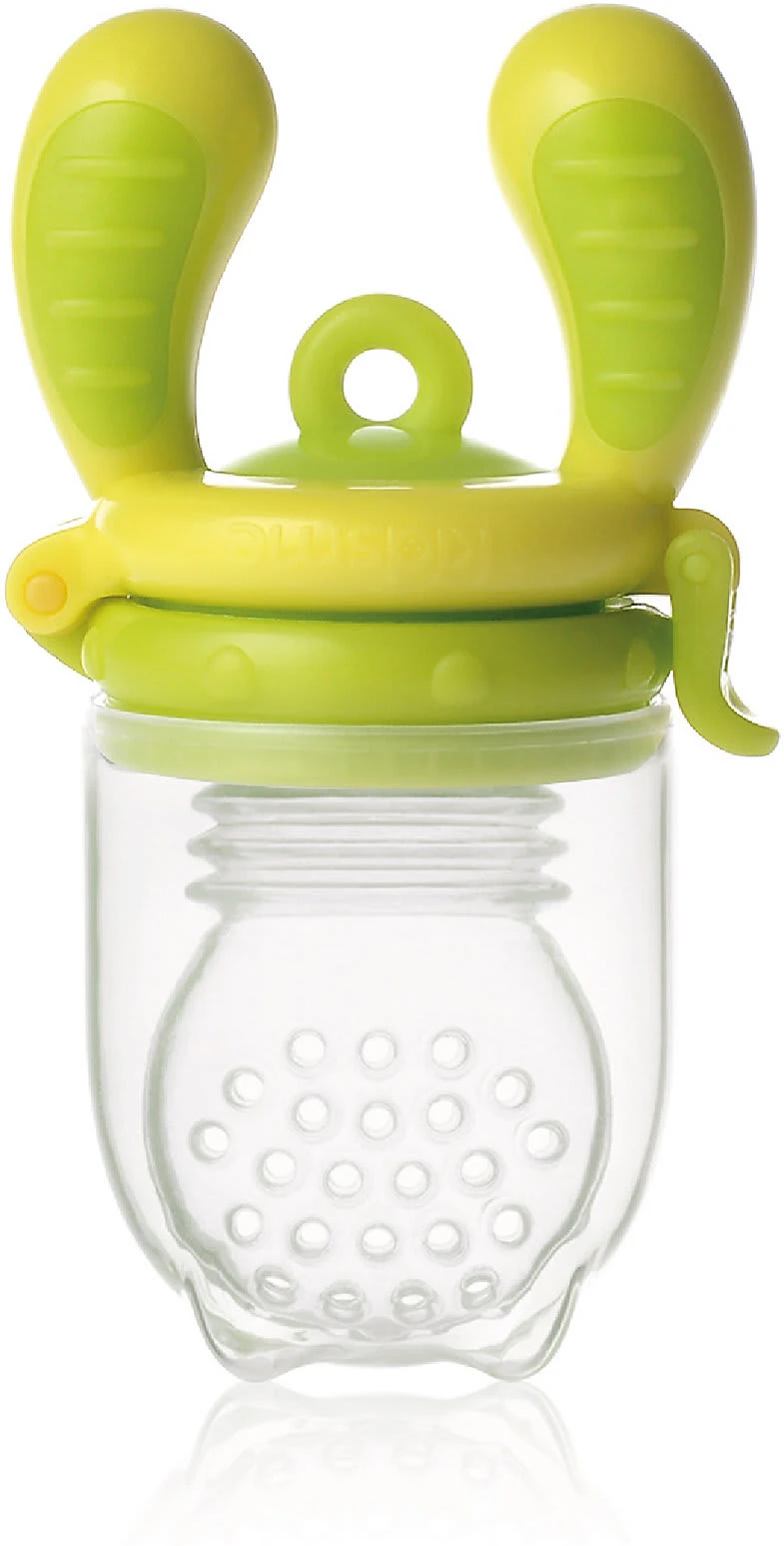 Der Beikostsauger Food Feeder von kidsme gewöhnt den Nachwuchs langsam daran, feste Nahrung zu sich zu nehmen. Füllmenge: Größe L Lieferumfang: Food Feeder, austauschbarer Silikonsauger, Schutzkappe Altersempfehlung: ab ca. 6 Monaten Sauger-Eigenschaften: Form: naturnah, Material: Silikon Extras: ergonomische Griffe, auch als Zahnungshilfe nutzbar, sterilisierbar, spülmaschinenfest Der Food Feeder bringt Abwechslung auf Babys Speiseplan. Pürierte Nahrung lässt sich direkt in den Sauger füllen. Den Kleinen fällt das Essen so leichter als mit einem Löffel. Schritt für Schritt trainieren sie, feste Nahrung zu sich zu nehmen. Dank der ergonomischen Griffe können sie das Design selbständig halten. Da sich der Food Feeder auch optimal dazu eignet, das Zahnfleisch zu massieren, kann er als Zahnungshilfe verwendet werden. Je nach Befüllung bietet er dem Nachwuchs auch kühlende Eigenschaften. Für unterwegs verfügt der Beikostsauger über eine praktische Schutzkappe. Wahlweise kann er mit einem Schnullerclip direkt an der Kleidung des Kindes befestigt werden. Die Reinigung gestaltet sich dank spülmaschinenfester und sterilisierbarer Eigenschaften komfortabel.