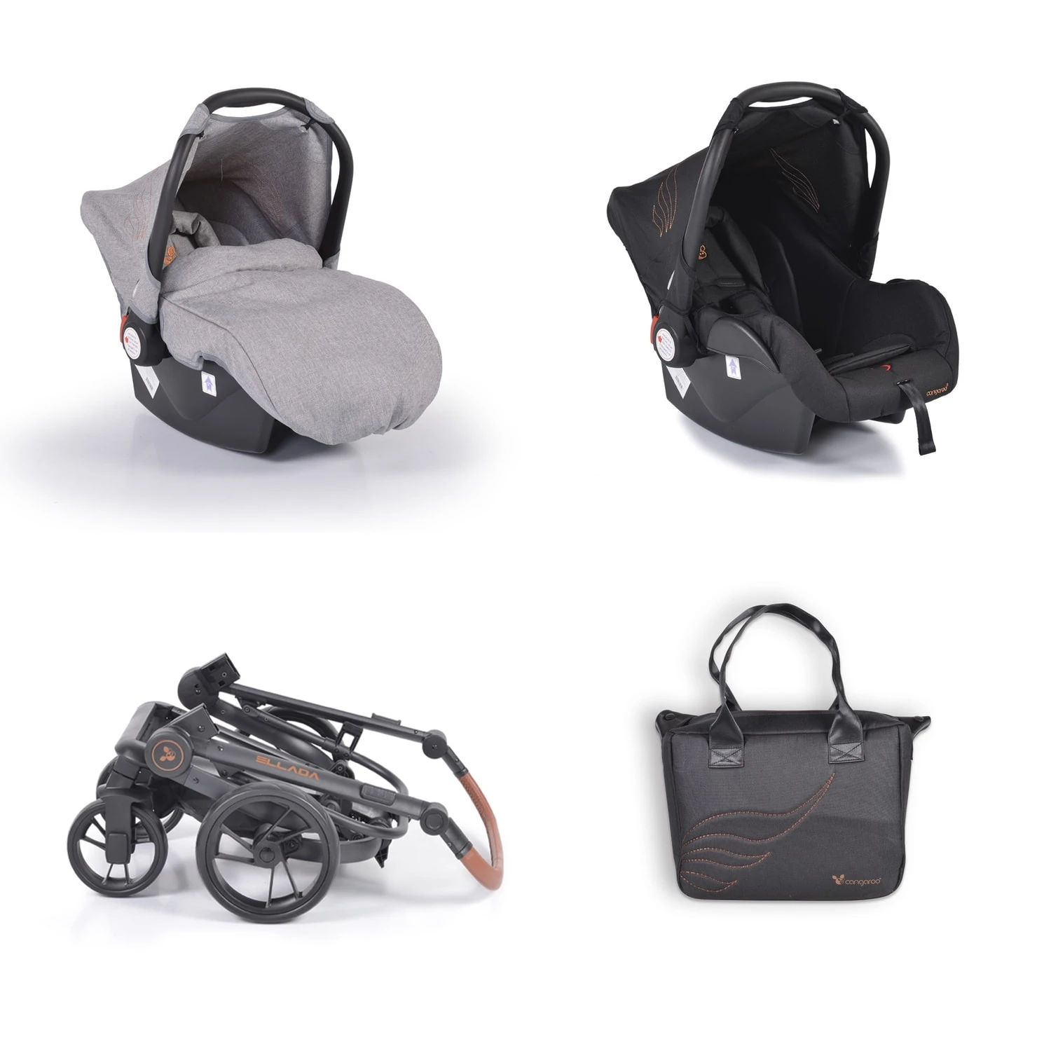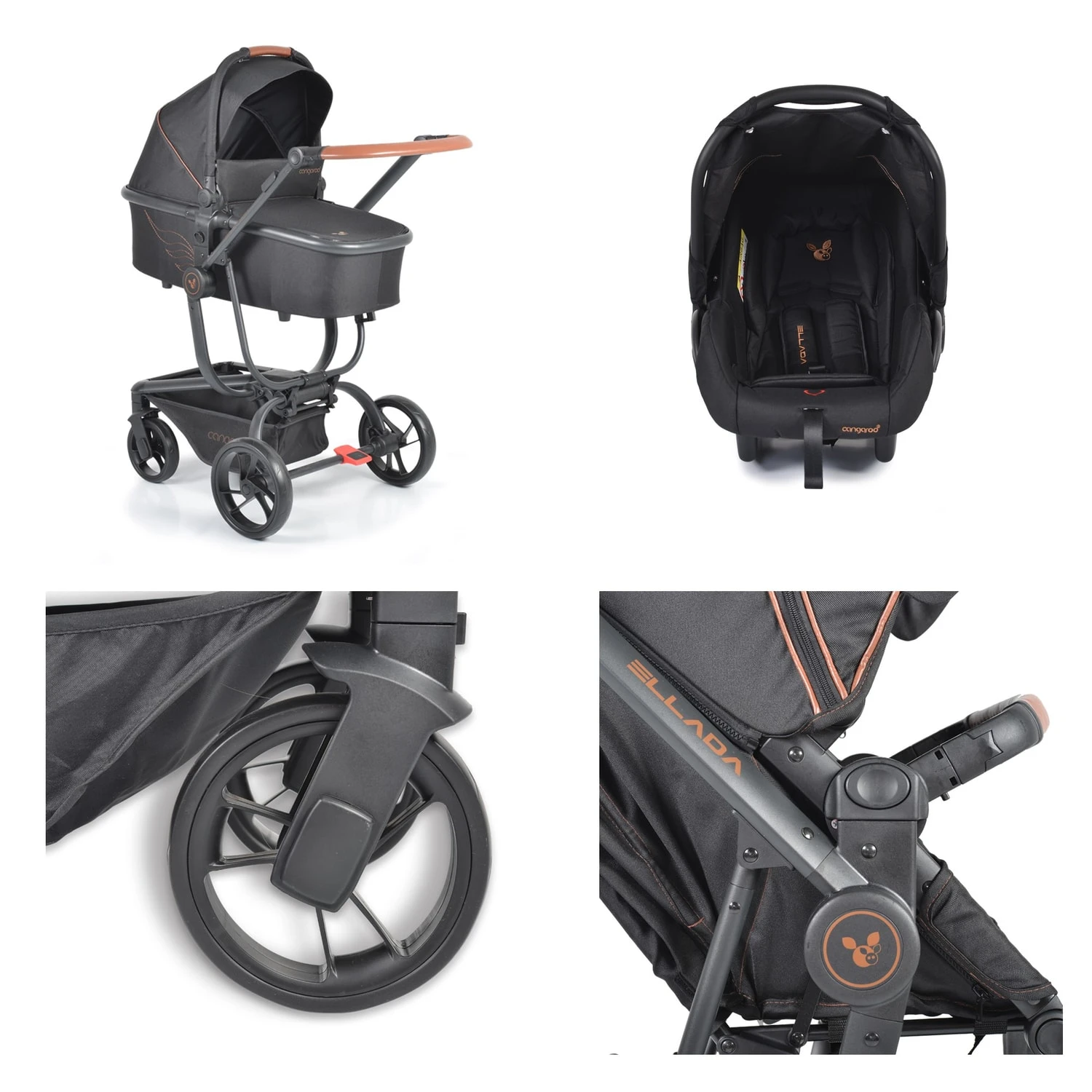 Besonderheiten Artikel Cangaroo Kinderwagen Ellada 3 in 1 Babyschale, Babywanne, Sportsitz, klappbar