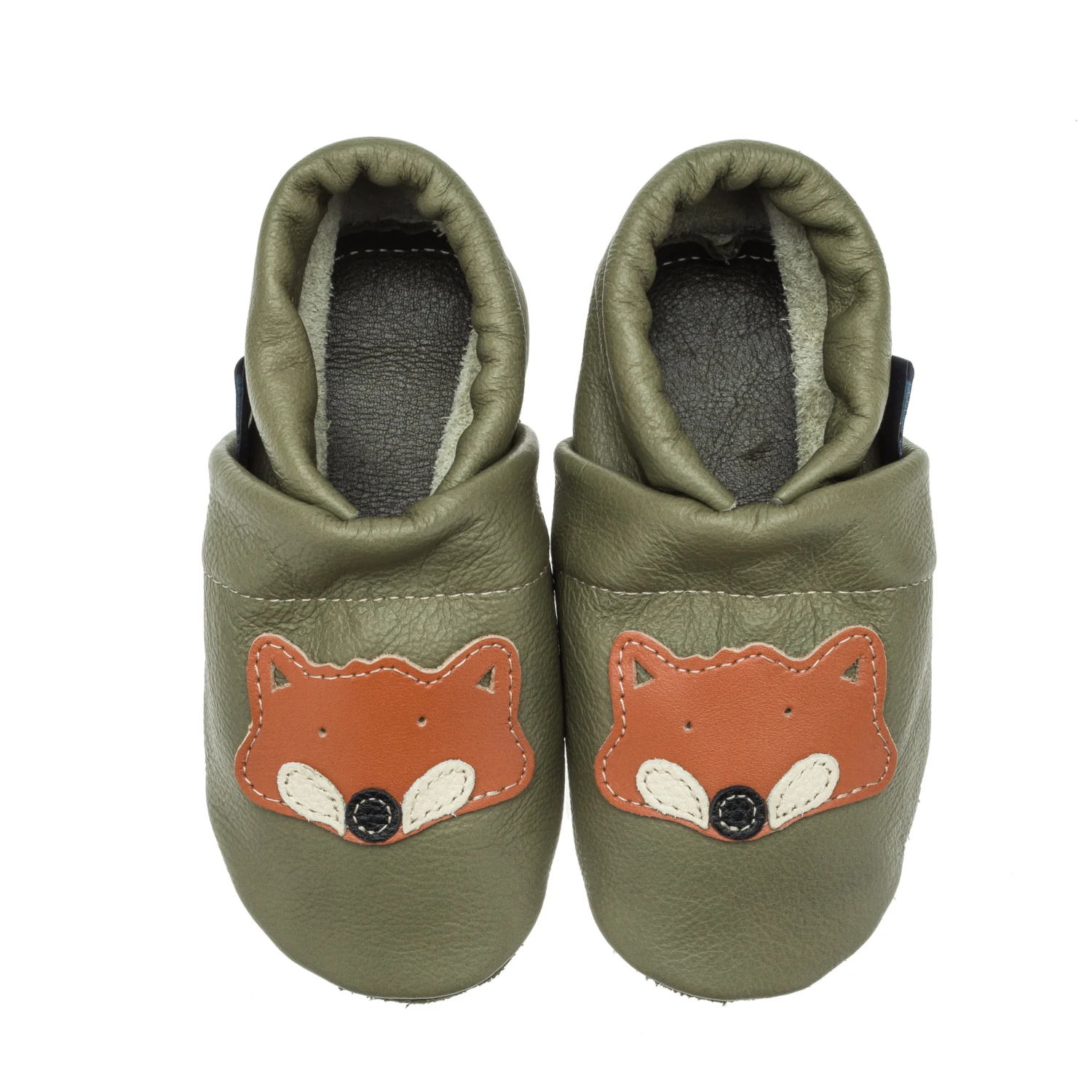Lauflernschuhe / Lederpuschen Mit Fuchs In Grün / Orange
