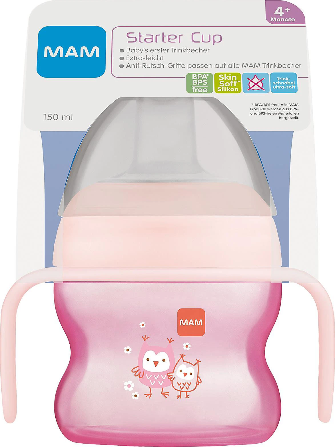 Der MAM Starter Cup ist ein leichter Trinklernbecher für erste eigenständige Trinkversuche. Selbstständiges Trinken bedeutet für Babys einen wichtigen Schritt in der Entwicklung. Der MAM Starter Cup mit extra-weichem, tropffreien Silikon-Trinkschnabel ist ideal für die ersten, eigenständigen Trinkversuche aus einem Becher geeignet. Der am Rand des Bechers angebrachte Trinkschnabel bereitet Kinder auf das Trinken aus dem Glas vor, ganz ohne Kleckern. Die taillierte Form und die ergonomischen, rutschsicheren Griffe erleichtern es Babys und Kleinkindern den Becher gut zu halten. Durch den Verschlussdeckel kann der Trinkbecher verschlossen und damit auch leicht unterwegs transportiert werden. Der MAM Starter Cup kann in der Spülmaschine gereinigt werden und ist für Kinder ab 4 Monaten geeignet. Alle Einzelteile des MAM Starter Cups können mit anderen MAM Trinkbechern kombiniert werden.
