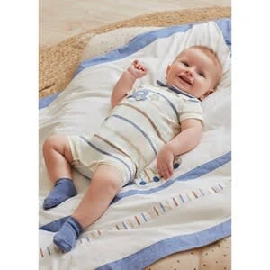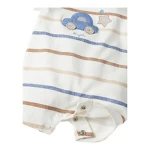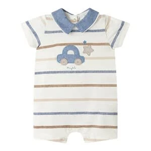 Der Polo-Spieler von Mayoral überzeugt mit hohem Baumwoll-Anteil und hübscher Auto-Applikation. Polo-Spieler von Mayoral geringelt, Auto- und Sternenapplikation auf Brusthöhe farblich abgesetzter Polokragen durchgehende Druckknopfleiste am Rücken und im Schrittbereich elastischer Baumwoll-Mix Ein hoher Baumwoll-Anteil sorgt dafür, dass der Spieler angenehm weich auf der Haut liegt. Eine kleine Beigabe von Elasthan schafft ausreichend Bewegungsfreiheit. Der Rücken ist mit einer durchgehenden Druckknopfleiste versehen. Ist sie geöffnet, wird der farblich abgesetzte Polokragen weiter und Du kannst den Einteiler Deinem Kleinen ganz leicht anziehen. Auch das Wickeln ist dank Druckknopfleiste im Schrittbereich schnell erledigt. Ringel-Print in unterschiedlichen Farben und eine Auto- und Sternenapplikation auf Brusthöhe sorgen für einen hübschen Look.