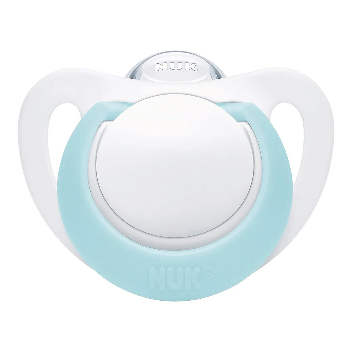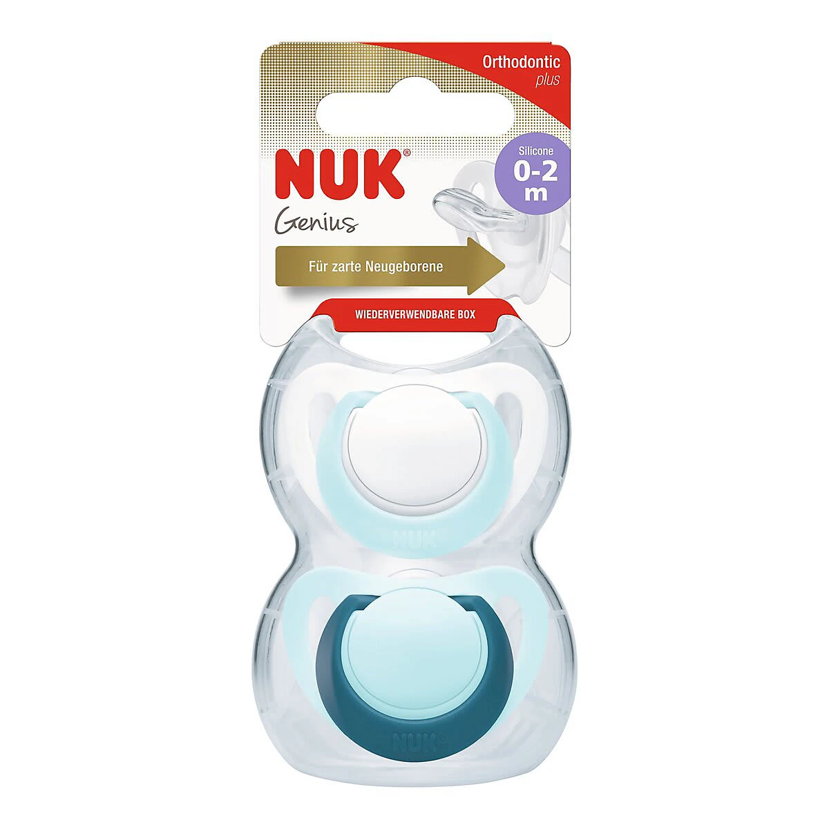 Die Schnuller des 2er-Packs Genius von NUK setzen auf ein innovatives Design mit extraflachem und softem Sauger. Lieferumfang: 2er-Pack NUK Schnuller Genius (farblich sortiert) Altersempfehlung: 0 bis 6 Monate Form: naturnah und kiefergerecht Material: Silikon (100 % ) Ganz gleich, ob die Kleinen zur Ruhe kommen sollen, Hilfe beim Einschlafen oder Trost benötigen – der Silikon-Schnuller von NUK stillt das natürliche Saugbedürfnis. Aus temperaturbeständigem und glattem Silikon gefertigt, überzeugt der Nuckel mit weichen Saugeigenschaften. Das extraflache Lutschteil bietet der Zunge noch mehr Freiraum und ermöglicht eine natürliche Saugbewegung. Der Saugerhals ist zudem dünner und schmaler, um Druck auf Kiefer und Zähne zu reduzieren. Das Air System lässt Luft aus dem Sauger entweichen. Dadurch ist der Schnuller nicht nur besonders weich, sondern passt sich dem Gaumen stets optimal an.