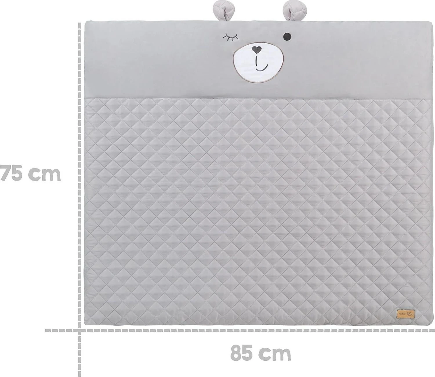Diese schöne Krabbeldecke aus dem Hause Roba bietet kleinen Entdecker*innen einen besonders bequemen Ort für die ersten Krabbelversuche und unterhaltsamen Spielspaß! Die weiche Decke kommt mit einem Spielbogen, der bereits mit fünf tollen Spielzeugen ausgestattet ist. So können Kinder lustige Quietsch- und Klingelgeräusche entdecken, sich selbst in der Spiegelfolie betrachten und vieles mehr. Wird der Spielbogen nicht benötigt, lässt er sich einfach abnehmen. Die Krabbeldecke ist dank der wasser- und schmutzabweisenden Oberseite besonders pflegeleicht und kann auch als Wickelauflage verwendet werden.