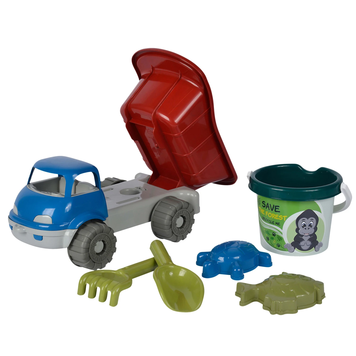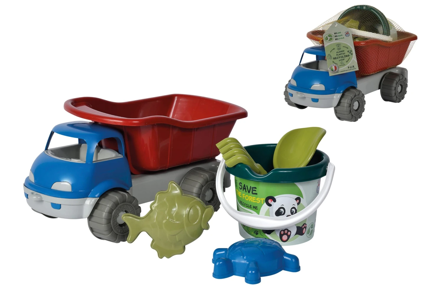 aus recyceltem Material, Inhalt: Kipper, Eimer, 2x Sandform, Schaufel, Rechen